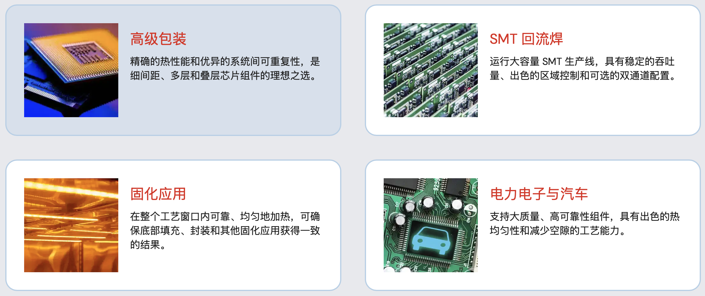 无论您是在维护现有系统,还是在计划下一次采购,BTU 将竭诚为您服务。我们提供 24/7 全天候全球支持、高性能系统升级以及行业领先的回流焊炉和定制热处理解决方案,可根据您的需求量身定制。